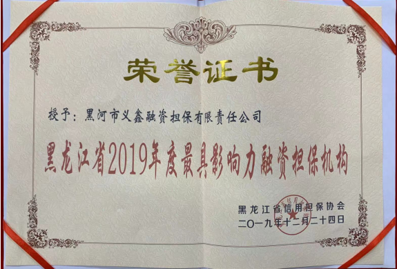 - 2019/12/30 義鑫擔(dān)保公司榮獲“黑龍江省2019年度最具影響